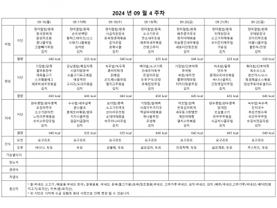 9월 4주차 식단표