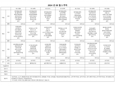 9월 5주 식단표