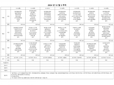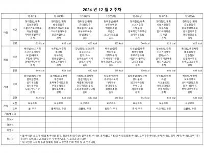 12월 1주 식단표(11월 5주)