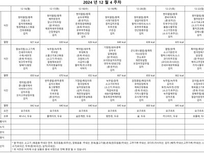 12월 4주 식단표