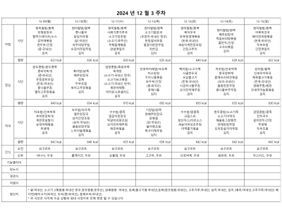 12월 3주 식단표