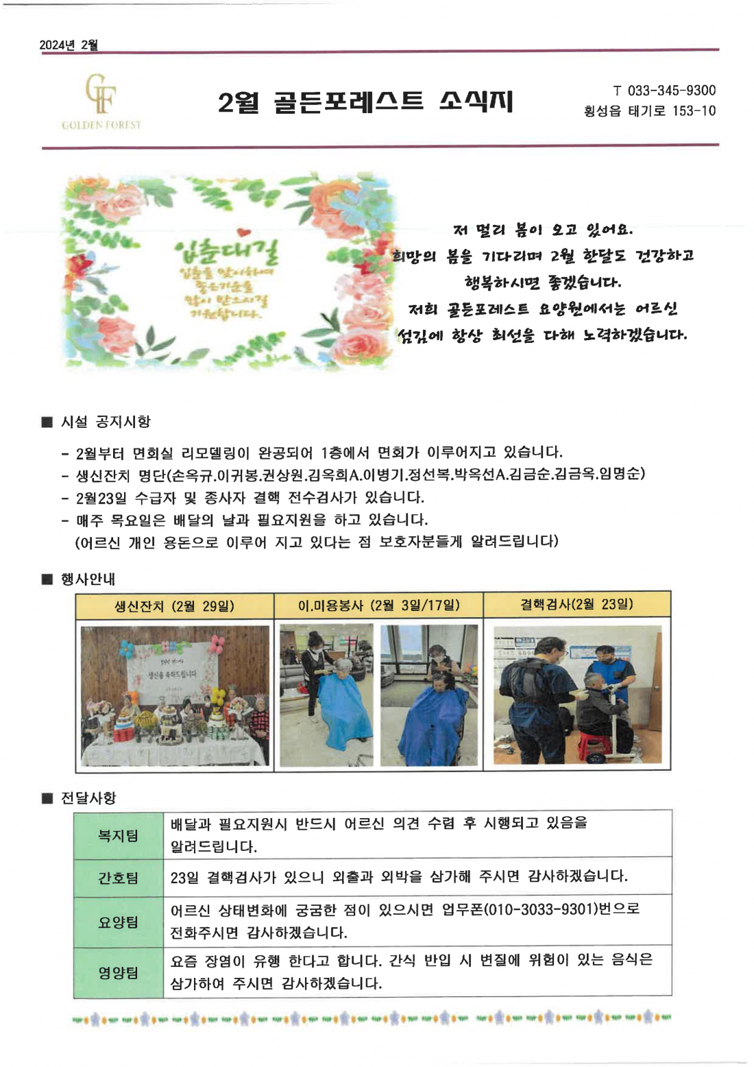 2024년 2월 골든포레스트 소식지 페이지 정보 작성자 관리자 댓글 댓글 0건 조회Hit 362회 작성일Date 24-02-01 12:01 본문 - 추천0 목록 이전글2024년 3월 골든포레스트 소식지 24.03.01 다음글2024년 1월 골든포레스트 소식지 24.01.01 댓글 0 댓글목록 등록된 댓글이 없습니다.